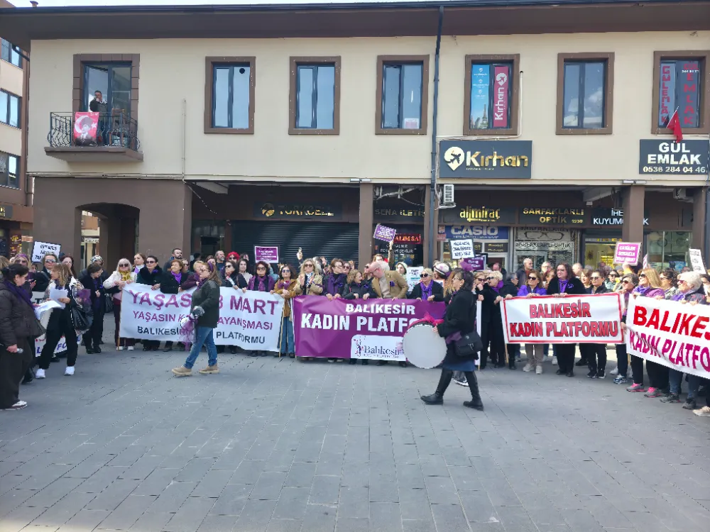 Balıkesir Kadın Platformu, 8 Mart Dünya Emekçi Kadınlar Günü dolayısıyla Balıkesir’de yürüyüş ve basın açıklaması gerçekleştirdi. Balıkesir Toplu Taşıma Merkezi (TTM) önünde toplanan kadınlar, Ali Hikmet Paşa Meydanı’na kadar yürüyerek burada basın açıklaması yaptı.