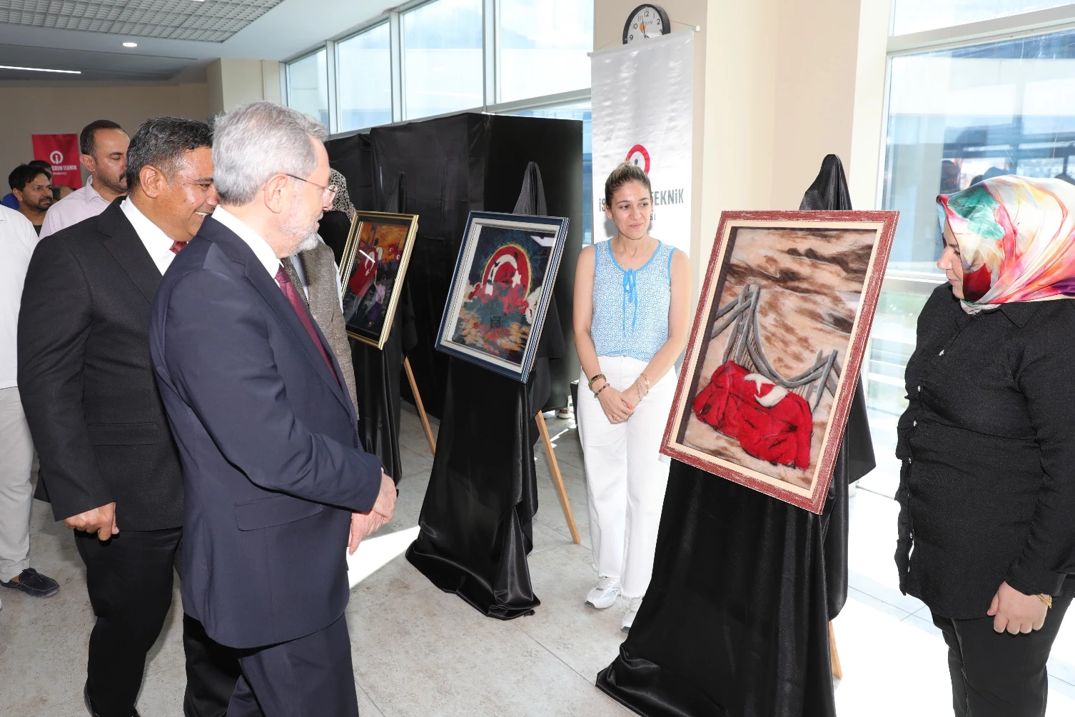 “15 Temmuz” temalı keçe sanatı sergisinin açılışıyla devam eden programda davetliler, özenle hazırlanan eserleri incelerken, etkinlik, katılımcılara aşure ikramıyla sona erdi.