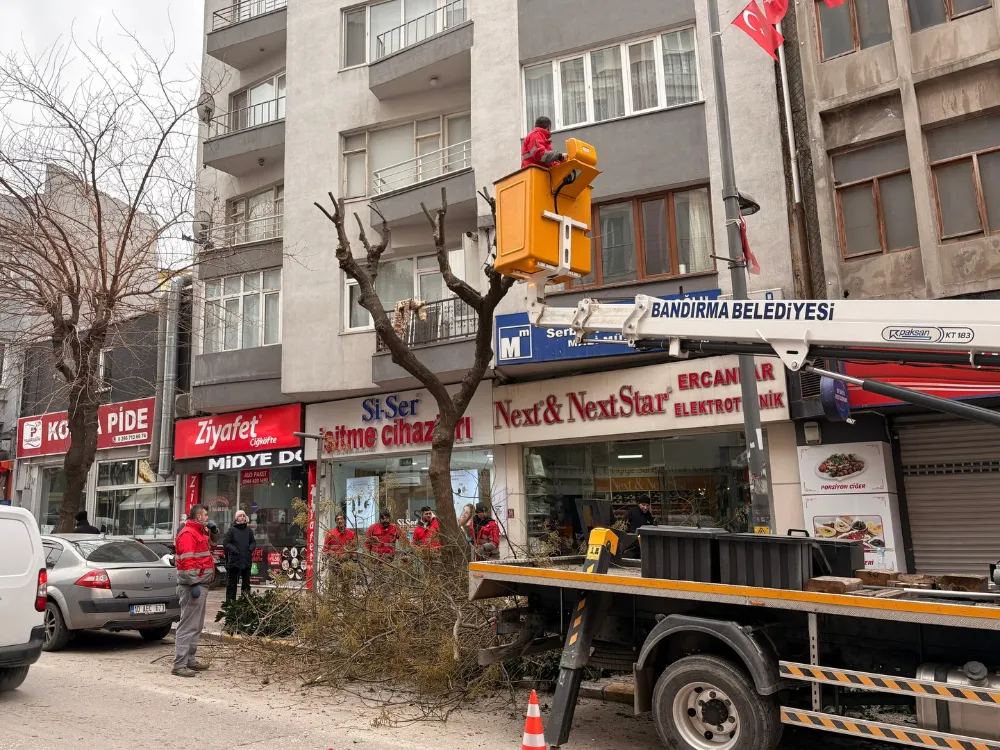 Bandırma Belediyesi, kent estetiğini korumak ve ağaçların sağlıklı gelişimini desteklemek amacıyla Ordu Caddesi’nde mevsimine uygun ağaç budama çalışmalarını sürdürüyor.
