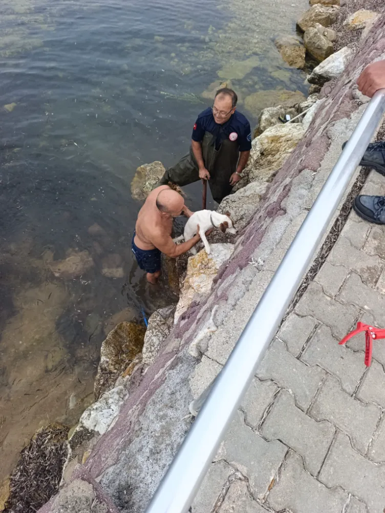 Köpeğin sağ salim kurtarılması, sahilde bulunan vatandaşlar tarafından memnuniyetle karşılandı.