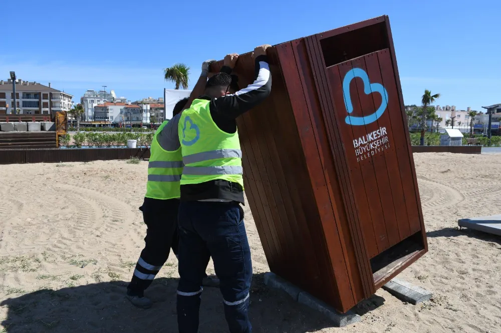 Kıyı kesimlerinde detaylı çalışma yapan Balıkesir Büyükşehir Belediyesi İlçe Hizmetleri 1. Bölge Dairesi Başkanlığına bağlı ekipler, sahillerdeki temizlik ve bakım çalışmalarını sürdürüyor. Bölge halkı ve turistlerin konforlu bir tatil geçirmesi için plajlarda sahil çapalama, kum eleme, mıntıka temizliği ve kurulum çalışmaları yapıldı. Balıkesir Büyükşehir Belediyesinin Güney Marmara ve Körfez’de yer alan sorumluluk alanındaki tüm sahil ve plajlarda çalışmalarını sürdüren ekipler, plajlarda eskiyen duş ve soyunma kabinlerini boyarken engelli vatandaşların güvenle denize girebilmesi içinde engelli rampalarının bakımlarını gerçekleştiriyor.